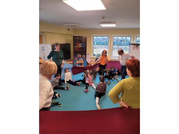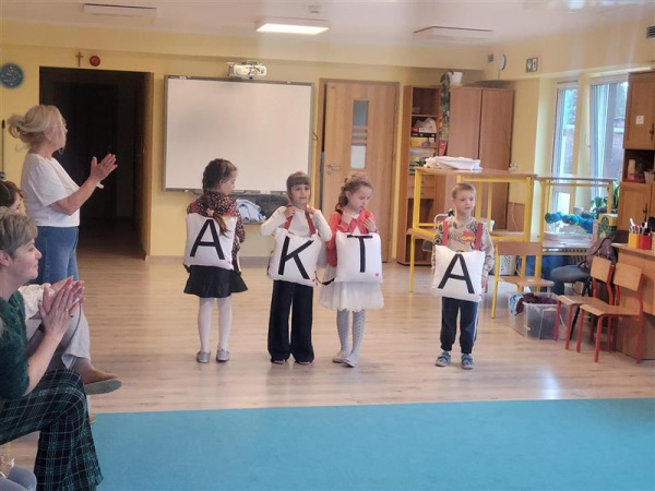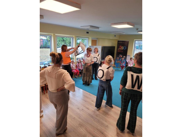Tego dnia do przedszkola zawitali wyjątkowi goście – członkowie Grupy Taneczno-Wokalnej działającej przy Fundacji Arka w Bydgoszczy oraz zaprzyjaźnieni seniorzy. Podczas animacji i zabaw prowadzonych przez panią Agatę z firmy On-Event dzieci i seniorzy mieli doskonałą okazję do wspólnej integracji.