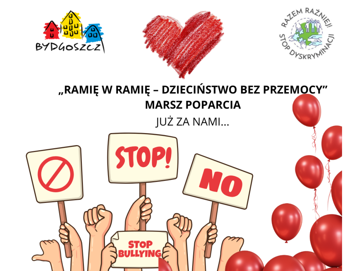 W środę, 19 listopada 2025 roku w Bydgoszczy odbył się wyjątkowy i symboliczny marsz pod hasłem „Ramię w Ramię – Dzieciństwo bez przemocy”, zorganizowany przez Wydział Edukacji i Sportu UMB oraz Zespół Szkół nr 32 w ramach ogólnopolskiej kampanii „Dzieciństwo bez Przemocy” prowadzonej przez Fundację Dajemy Dzieciom Siłę i Krajową Koalicję na rzecz Ochrony Dzieci. Marsz wpisuje się w ogólnopolską kampanię „Dzieciństwo bez Przemocy” 2025, która trwa od 6 października do 19 listopada. Tegoroczne hasło kampanii brzmi „Dobre dzieciństwo daje dziecku moc” — co przypomina, że dzieciństwo to fundament, który daje najmłodszym siłę do rozwoju i radzenia sobie z trudnościami.