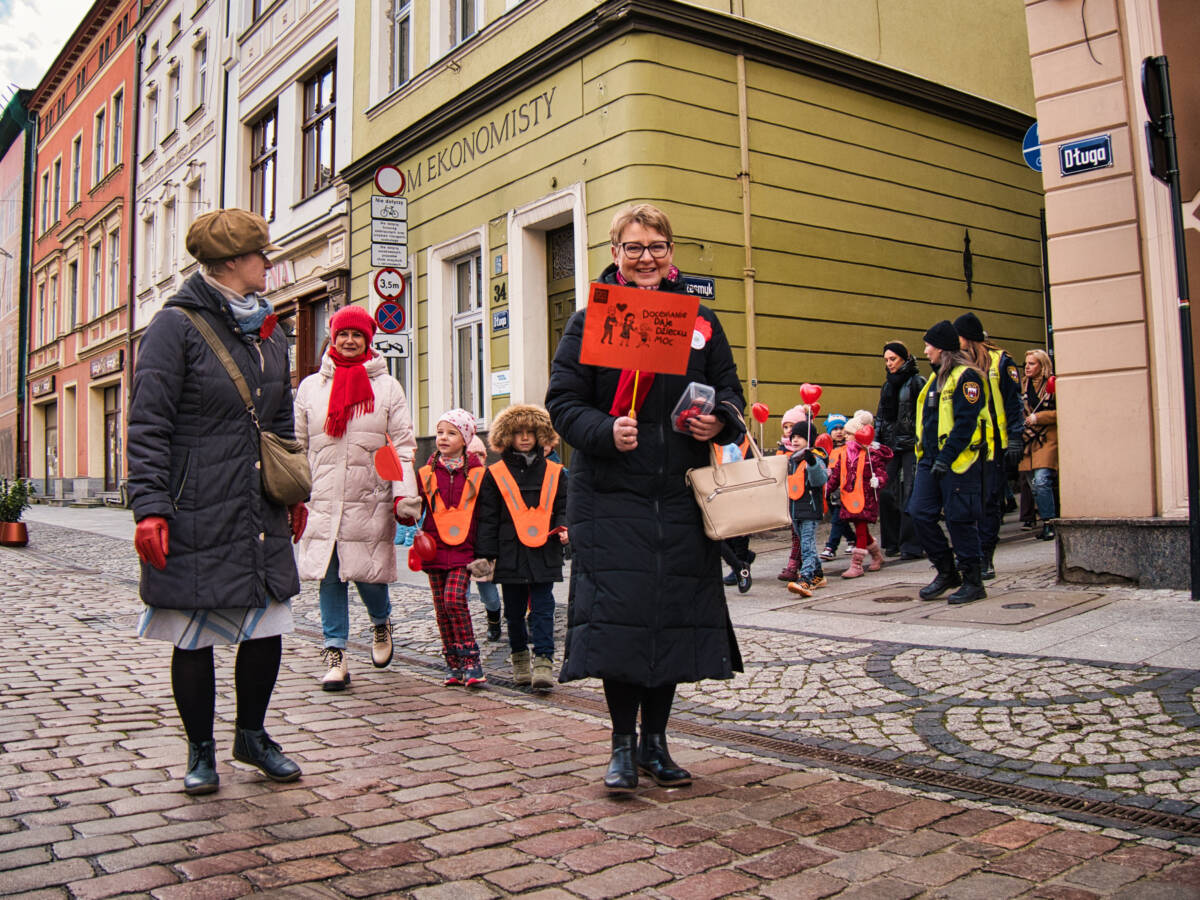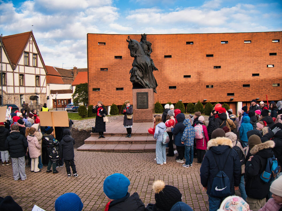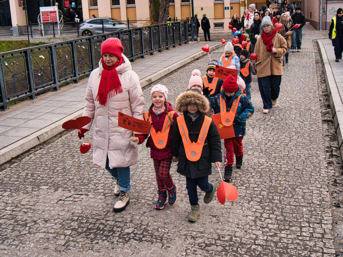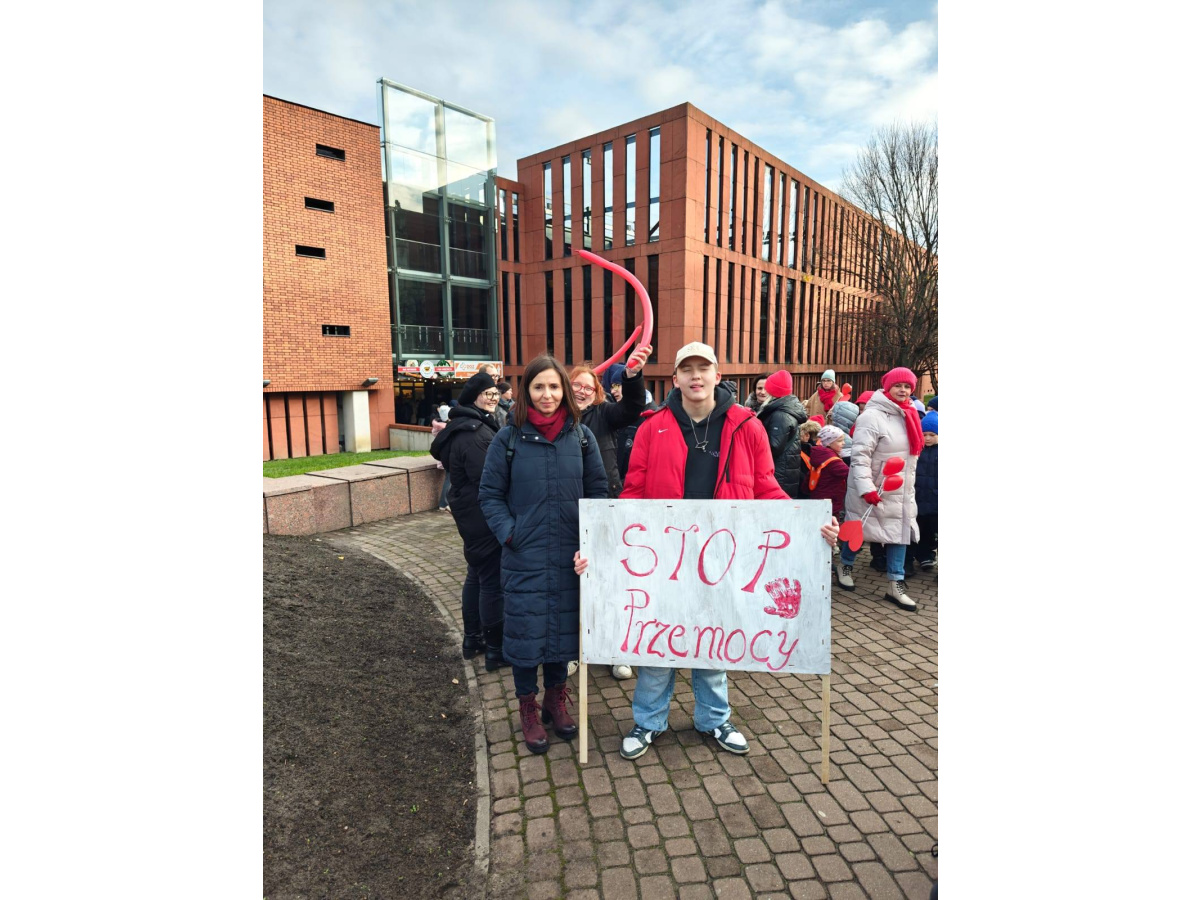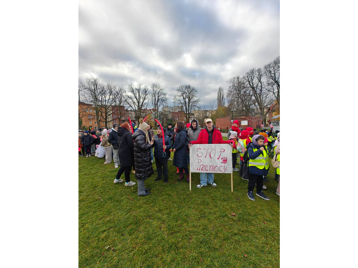 Zastępczyni prezydenta Iwona Waszkiewicz w przemówieniu podkreśliła, jak ważna jest solidarność wobec dzieci i zaangażowanie społeczności w przeciwdziałanie przemocy. Beata Mazur, dyrektorka ZS nr 32 i koordynatorka programu "Razem Raźniej", zaznaczyła, że marsz to nie jednorazowa akcja, lecz część ciągłego programu edukacyjnego — od lekcji w szkołach po podświetlenia budynków na czerwono jako znak sprzeciwu. Zwróciła uwagę, że taki był zamiar całej kampanii i dzisiejszego marszu, aby sprzeciwiać się nie tylko przemocy ze strony dorosłych, ale też tej rówieśniczej, którą dzieci wyrządzają sobie nawzajem. Wszyscy uczestnicy jednym głosem głośno wykrzyczeli "STOP PRZEMOCY! STOP PRZEMOCY! STOP PRZEMOCY!"