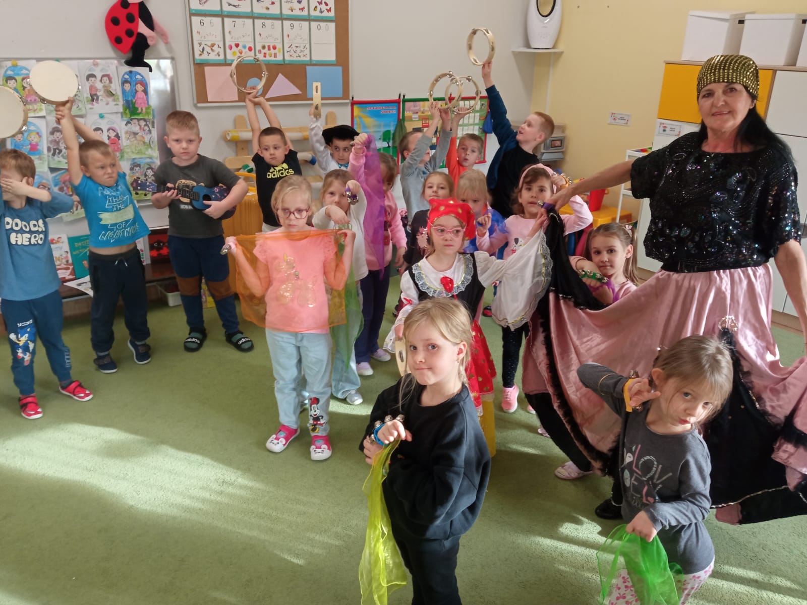 ● zabawach tanecznych i ruchowych, które pozwalały im poczuć rytm i energię innych kultur,