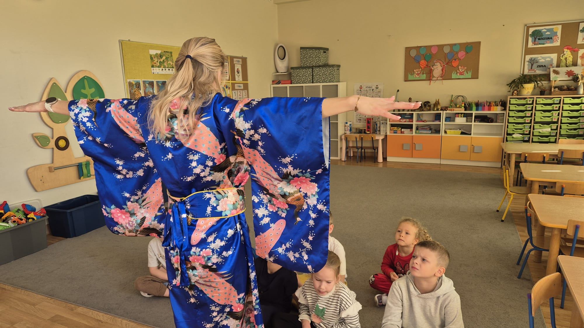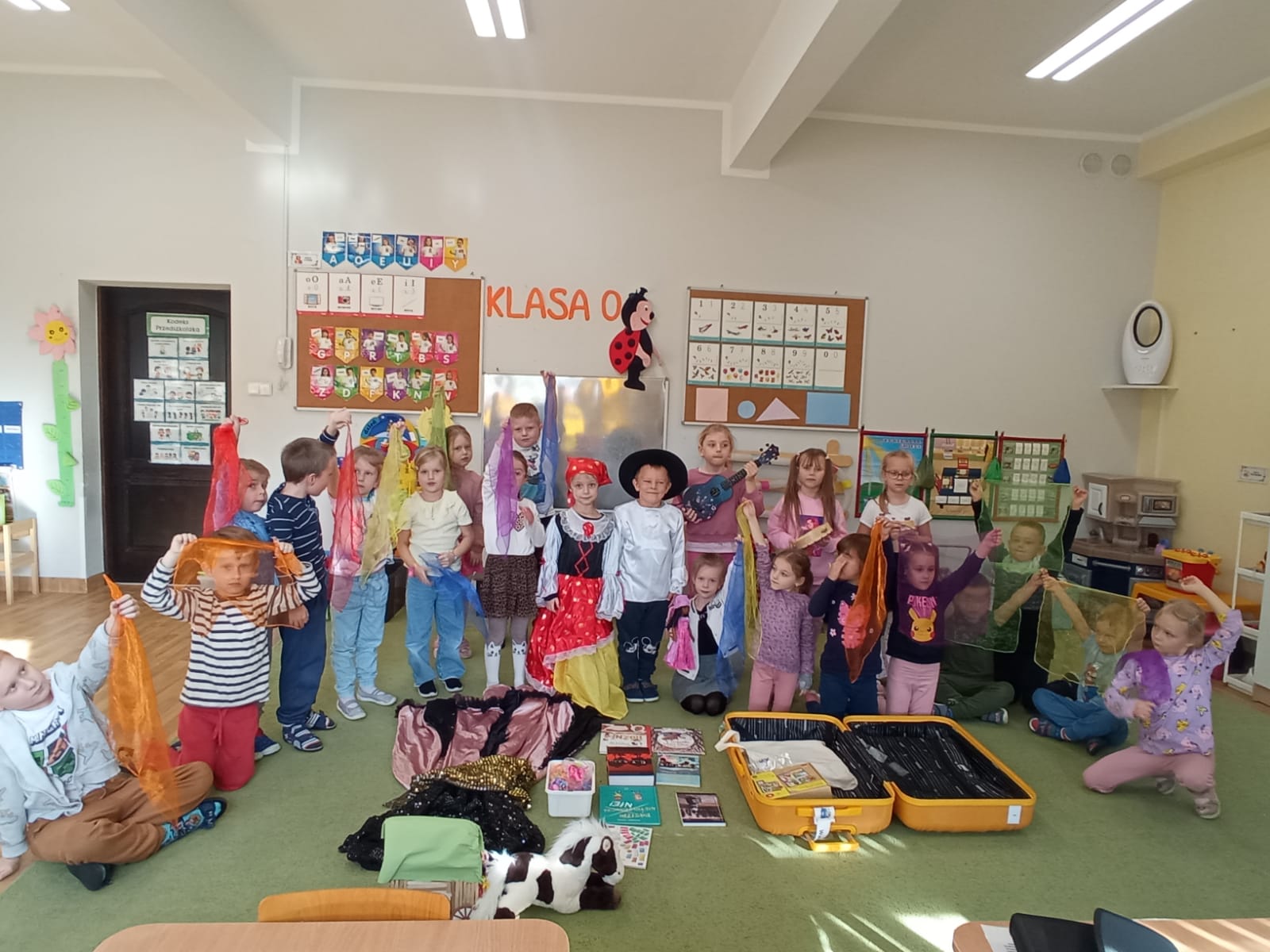Każda „walizka” była pełna niespodzianek – rekwizytów, zdjęć, materiałów edukacyjnych i muzyki, które pomagały dzieciom przenieść się w wyobraźni do innego kraju. Dzięki temu projektowi przedszkolaki nie tylko poszerzyły swoją wiedzę o świecie, ale również rozwijały empatię, kreatywność i umiejętność współpracy.