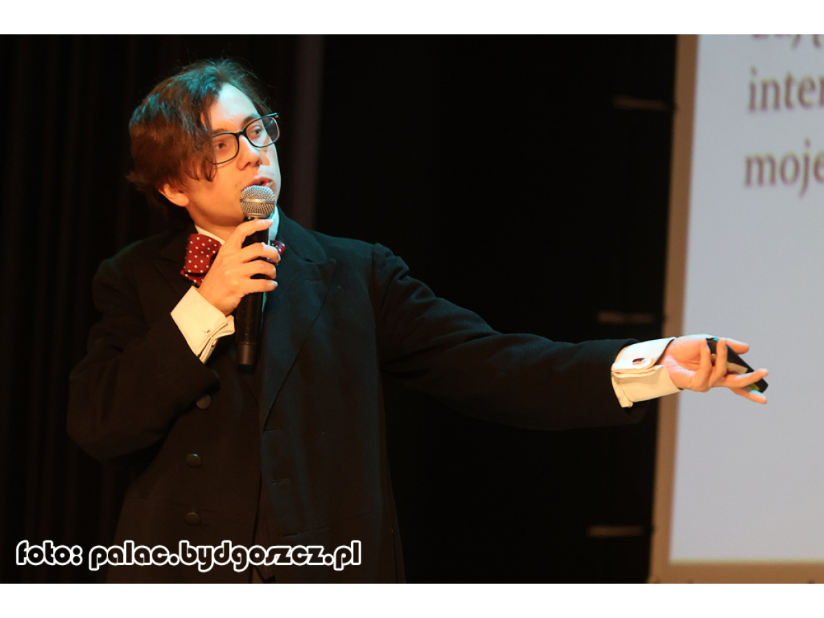 Trzykrotny laureat i finalista olimpiad z języka polskiego oraz historii przedstawił sposoby twórczego i świadomego wykorzystywania wiedzy historycznej w analizie literackiej.