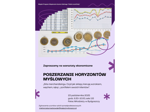 W ramach cyklu "Poszerzanie Horyzontów Myślowych" zapraszamy na warsztaty ekonomiczne dla najzdolniejszych uczniów ze szkół ponadpodstawowych zatytułowane „Siła merchandisingu. Czyli jak sklepy kierują wzrokiem, węchem, ręką i... portfelem swoich klientów”.