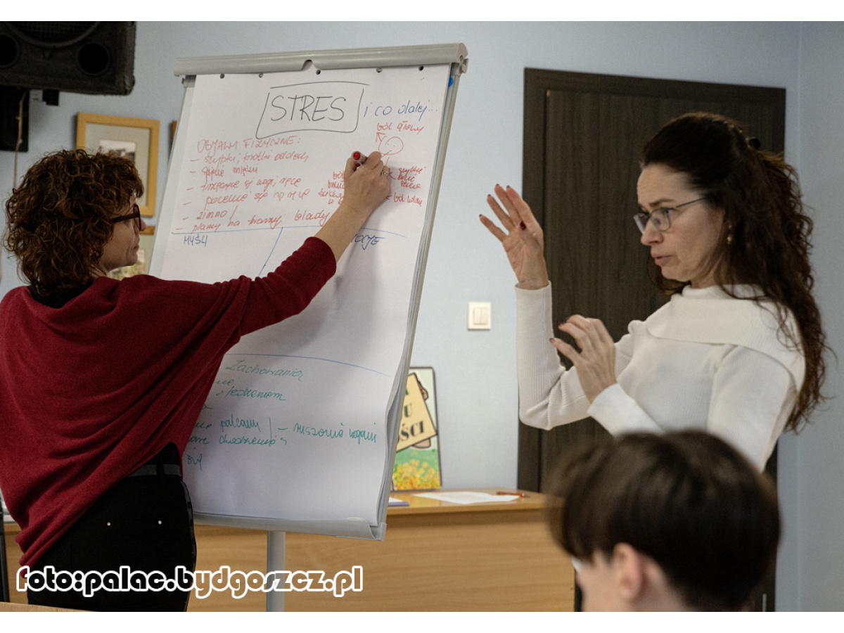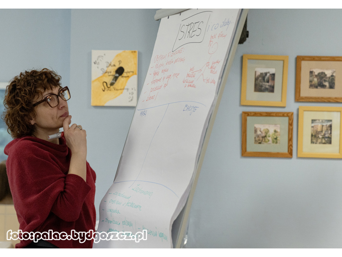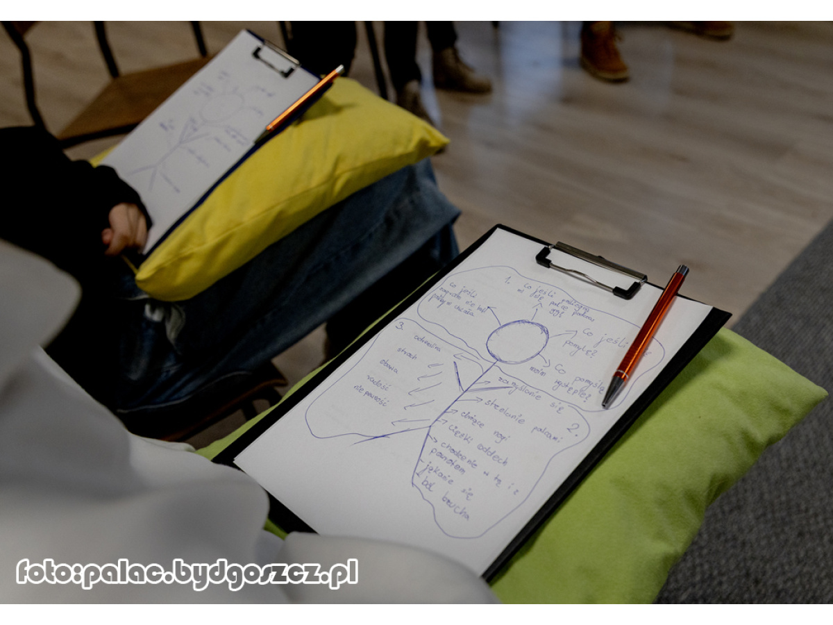 Spotkanie było skierowane do zdolnych uczniów klas VIII szkół podstawowych. Warsztaty pt. „Stres i co dalej” poprowadziły panie psycholog Sonia Szczurek oraz Magdalena Borowska z Poradni Psychologiczno-Pedagogicznej nr 1 w Bydgoszczy. Podczas spotkania uczestnicy zapoznali się z pojęciem stresu, jego mechanizmami oraz najczęściej występującymi objawami fizycznymi i emocjonalnymi. Prowadzące omówiły również konsekwencje długotrwałego narażenia na stres, zwracając szczególną uwagę na sytuacje typowe dla młodzieży kończącej szkołę podstawową, takie jak presja związana z nauką, egzaminem ósmoklasisty czy wyborem dalszej ścieżki edukacyjnej. Warsztaty miały charakter praktyczny. Uczniowie aktywnie uczestniczyli w ćwiczeniach rozwijających umiejętność rozpoznawania własnych reakcji na stres oraz poznawali techniki skutecznego radzenia sobie z napięciem. Ważnym elementem spotkania były ćwiczenia relaksacyjne i odprężające, które uczestnicy mogli samodzielnie przećwiczyć i które mogą wykorzystywać w codziennych sytuacjach wymagających większej odporności psychicznej. Warsztaty stanowiły wsparcie w zakresie rozwoju kompetencji emocjonalnych i społecznych uczniów zdolnych, wzmacniając ich umiejętność radzenia sobie ze stresem i wyzwaniami edukacyjnymi.