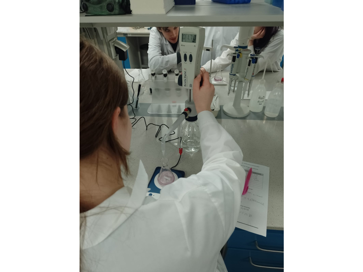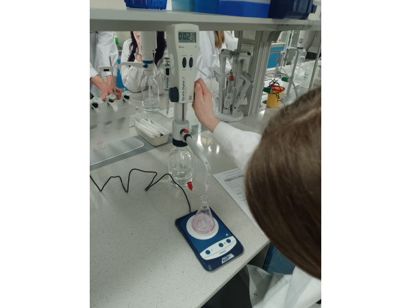 Ćwiczenie pozwoliło uczniom połączyć klasyczne techniki miareczkowania stosowane w chemii analitycznej z wykorzystaniem współczesnego wyposażenia laboratoryjnego. Zajęcia podkreślały znaczenie dokładności pomiarów, właściwej interpretacji wyników oraz praktycznego zastosowania metod analitycznych w ocenie jakości wody.