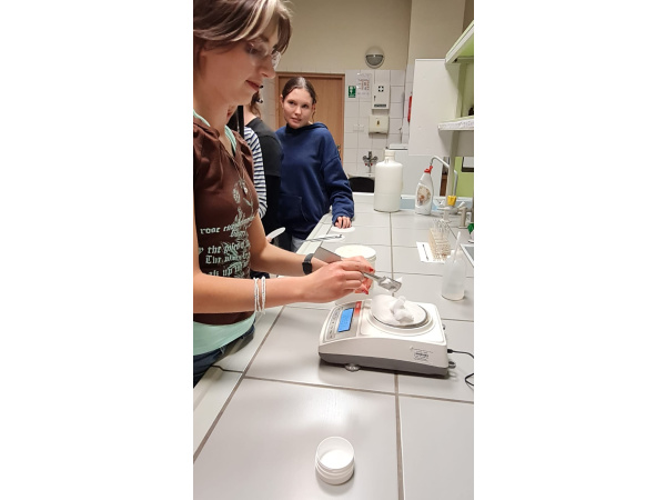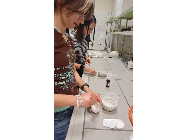 Zajęcia rozpoczęły się omówieniem budowy receptury oraz znaczenia poszczególnych składników w formulacji leku półstałego. Uczniowie dowiedzieli się, jak prawidłowo dobiera się substancję czynną, podłoże oraz dodatki pomocnicze w zależności od rodzaju zmian skórnych oraz oczekiwanego efektu terapeutycznego. Wskazano różnice między właściwościami podłoży hydrofobowych, hydrofilowych i emulsyjnych, a także omówiono ich wpływ na uwalnianie substancji leczniczej.