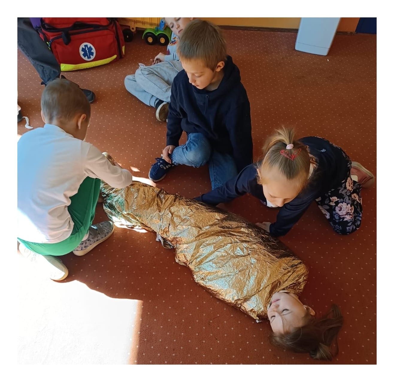 W części praktycznej dzieci uczyły się m.in. jak zadzwonić po pomoc, jak sprawdzić, czy ktoś jest przytomny i jak zatroszczyć się o bezpieczeństwo swoje i innych.